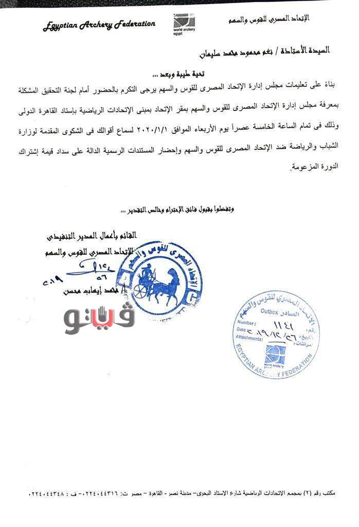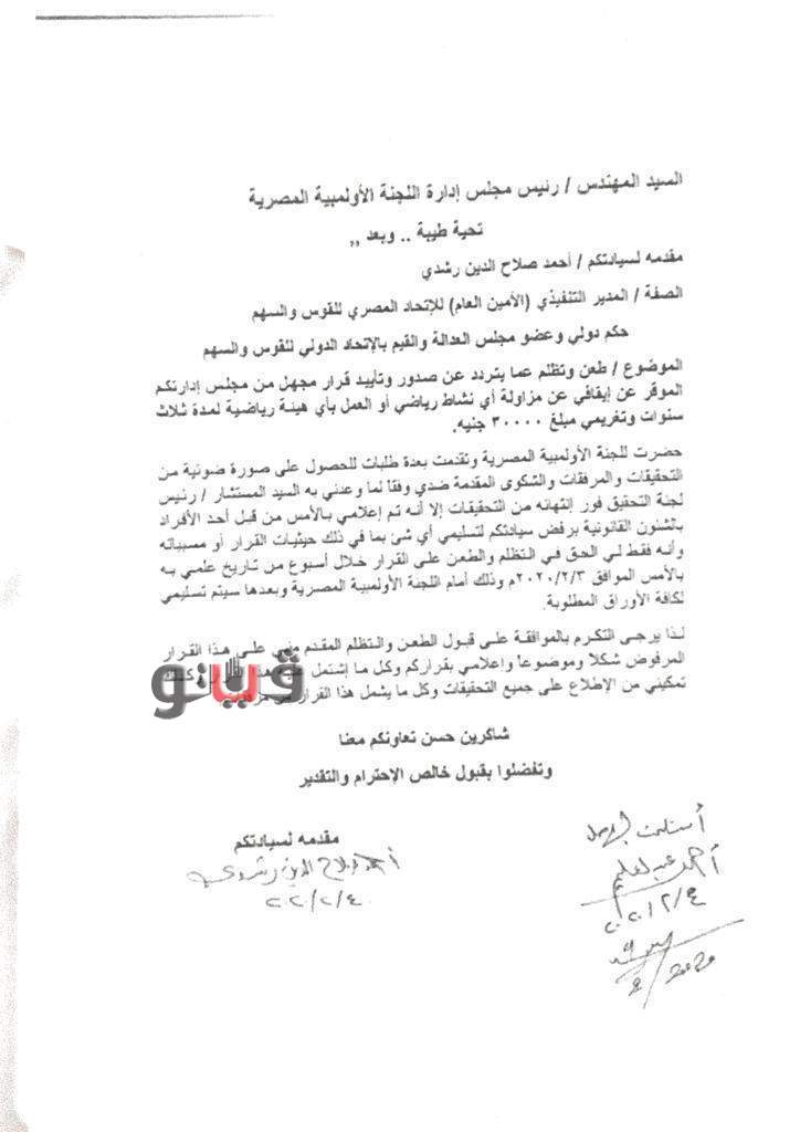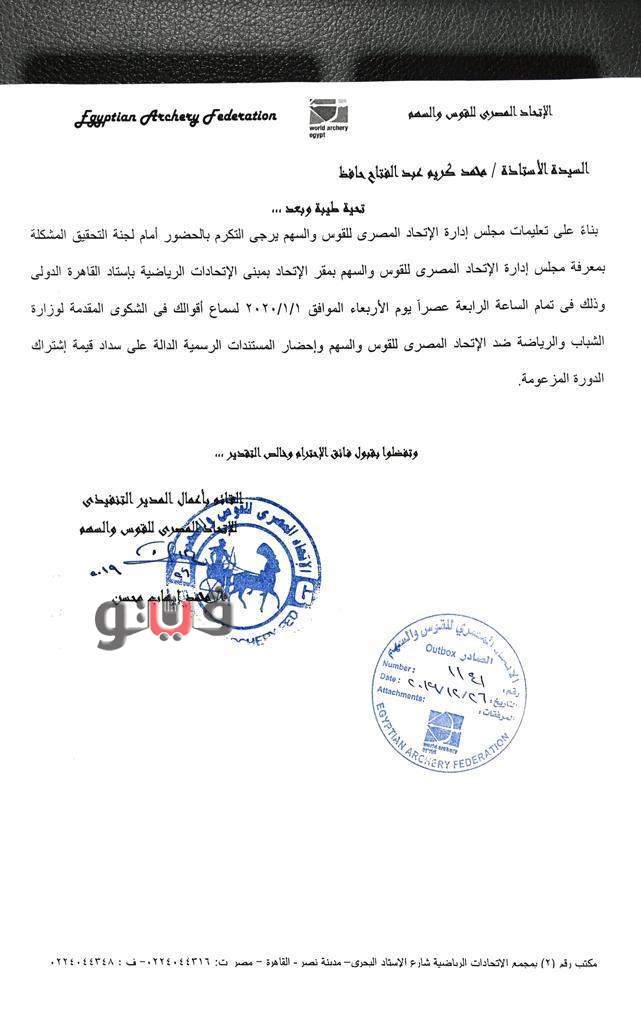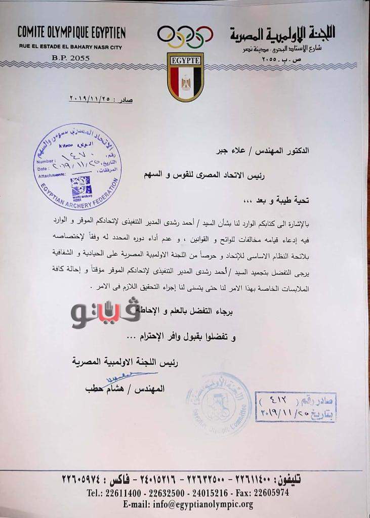 تقدم أحمد رشدي المدير التنفيذي لاتحاد القوس والسهم والحكم الدولي للعبة، بشكوى للدكتور أشرف صبحي وزير الشباب والرياضة ضد مجلس إدارة الاتحاد برئاسة علاء جبر، واللجنة الأولمبية برئاسة هشام حطب.