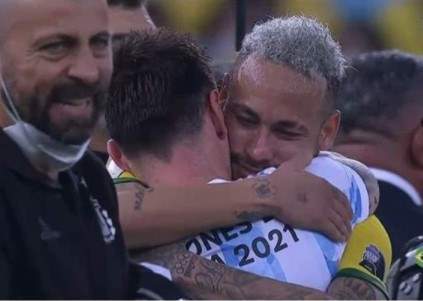 حرص النجم البرازيلي نيمار دا سيلفا على تهنئة ليونيل ميسي لاعب الأرجنتين بعد تتويج منتخب التانجو بلقب كوبا