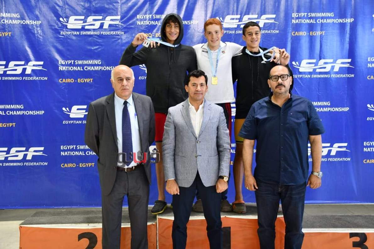 وزير الرياضة ونظيره الفلسطيني يشهدان بطولة الجمهورية للسباحة