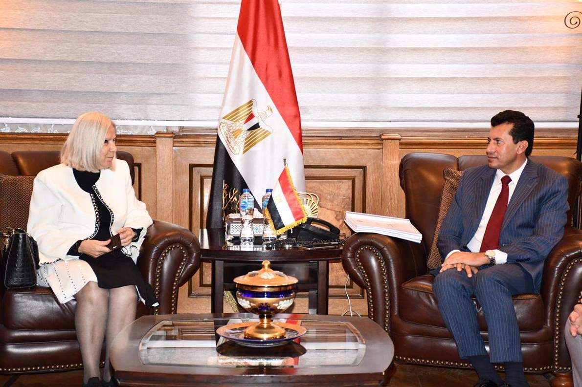 التقى الدكتور أشرف صبحي وزير الشباب والرياضة رئيس المكتب التنفيذي لمجلس وزراء الشباب والرياضة العرب، السفيرة هيفاء أبو غزالة مساعد الأمين العام لجامعة الدول العربية، لبحث آخر المستجدات قبل اجتماع المكتب التنفيذي لوزراء الشباب والرياضة العرب.