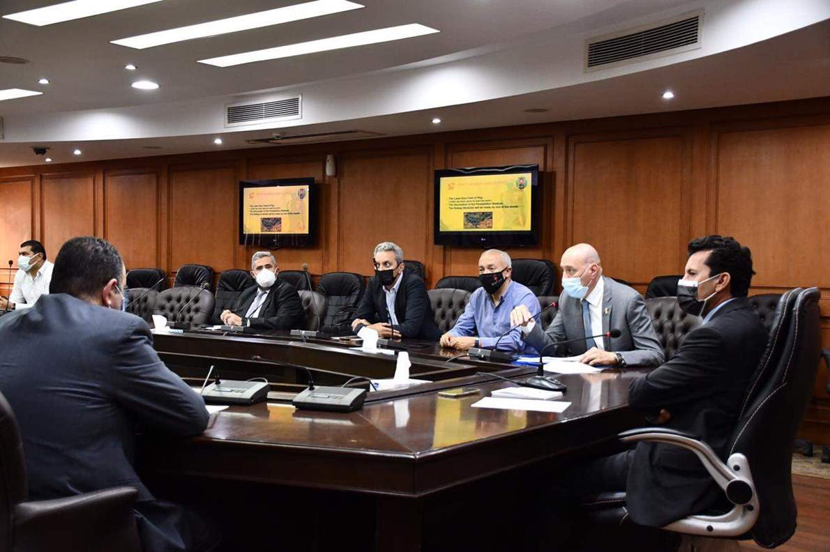 وشهد اللقاء عرضاً تقديمياً حول الأمور المتعلقة بمقترحات حفل افتتاح البطولة، وجاهزية الملاعب التي ستستضيف المنافسات بهيئة استاد القاهرة الدولي، والسيناريو المقترح بشأن الإجراءات الاحترازية التي سيتم تطبيقها للوقاية من فيروس كورونا.