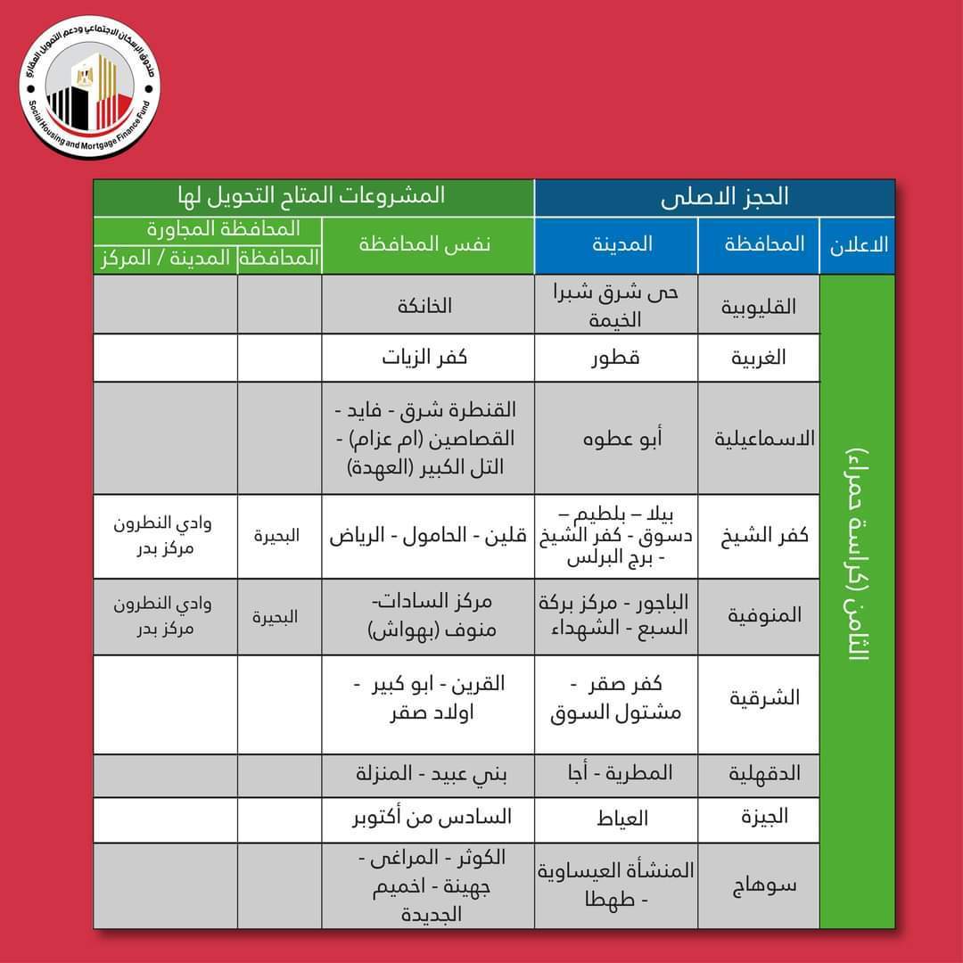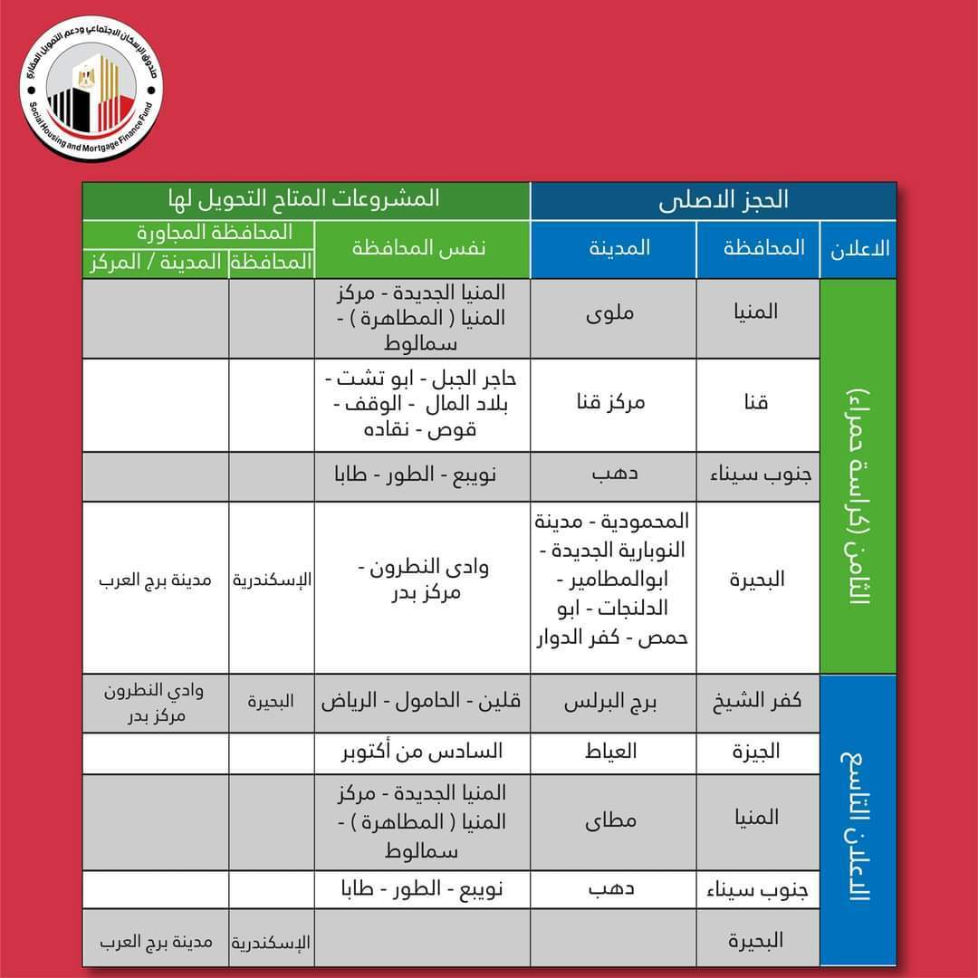 (الإعلان الثامن "الكراسة الحمراء/مراحل التشطيب – الزرقاء/تحت الإنشاء" - الإعلان التاسع - الإعلان الحادي عشر - الإعلان الثاني عشر - الإعلان الثالث عشر - الإسكان القومي من 2005 : 2009 - النقابات "محدودي الدخل").