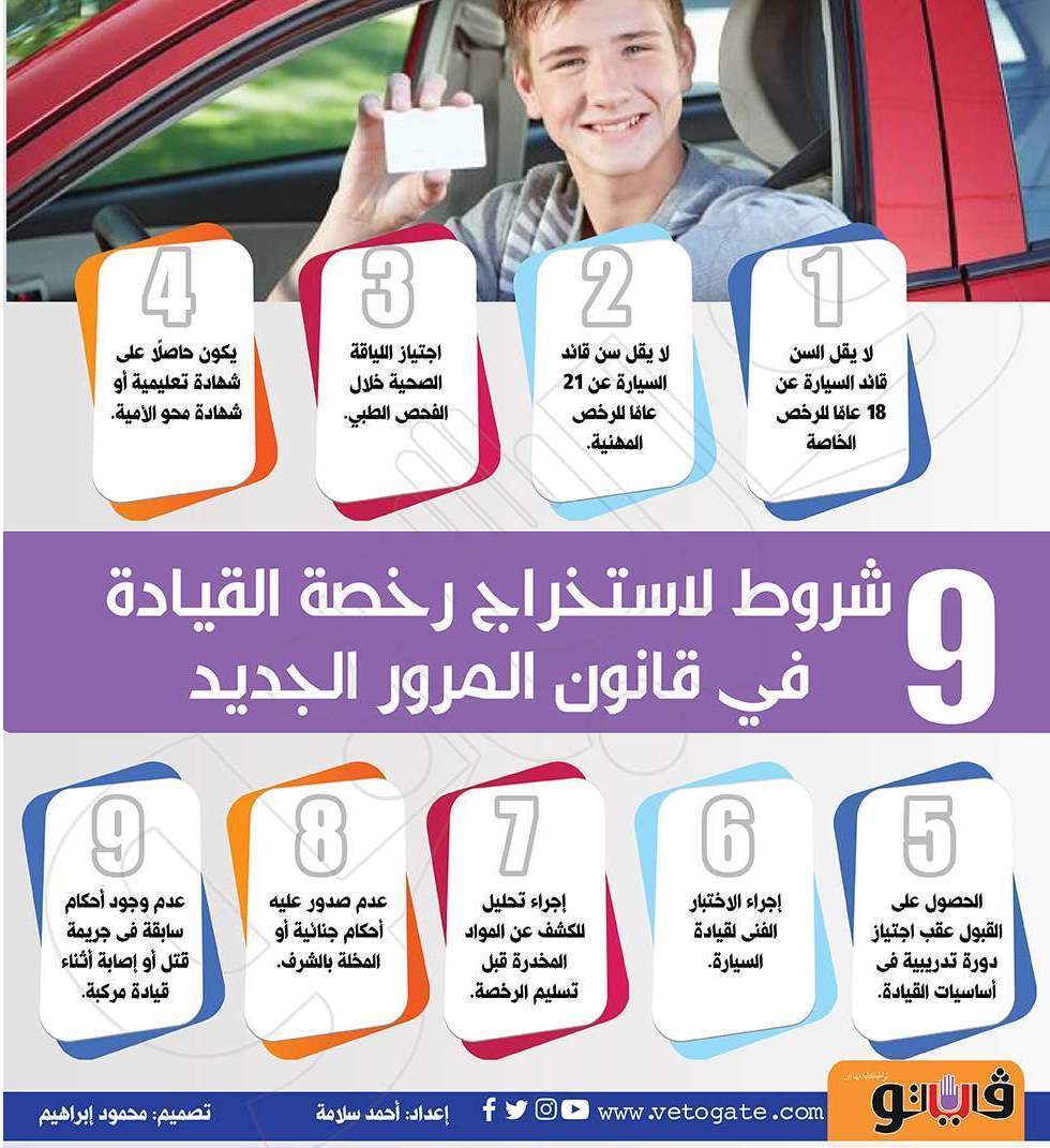 وترصد "فيتو" شروط استخراج رخصة قيادة للسيارة في قانون المرور الجديد وهي كالتالي: