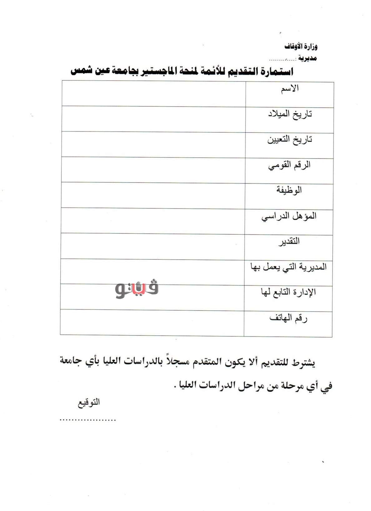 استمارة التقديم في منحة الماجستير والدكتوراه المجانية لأئمة الأوقاف