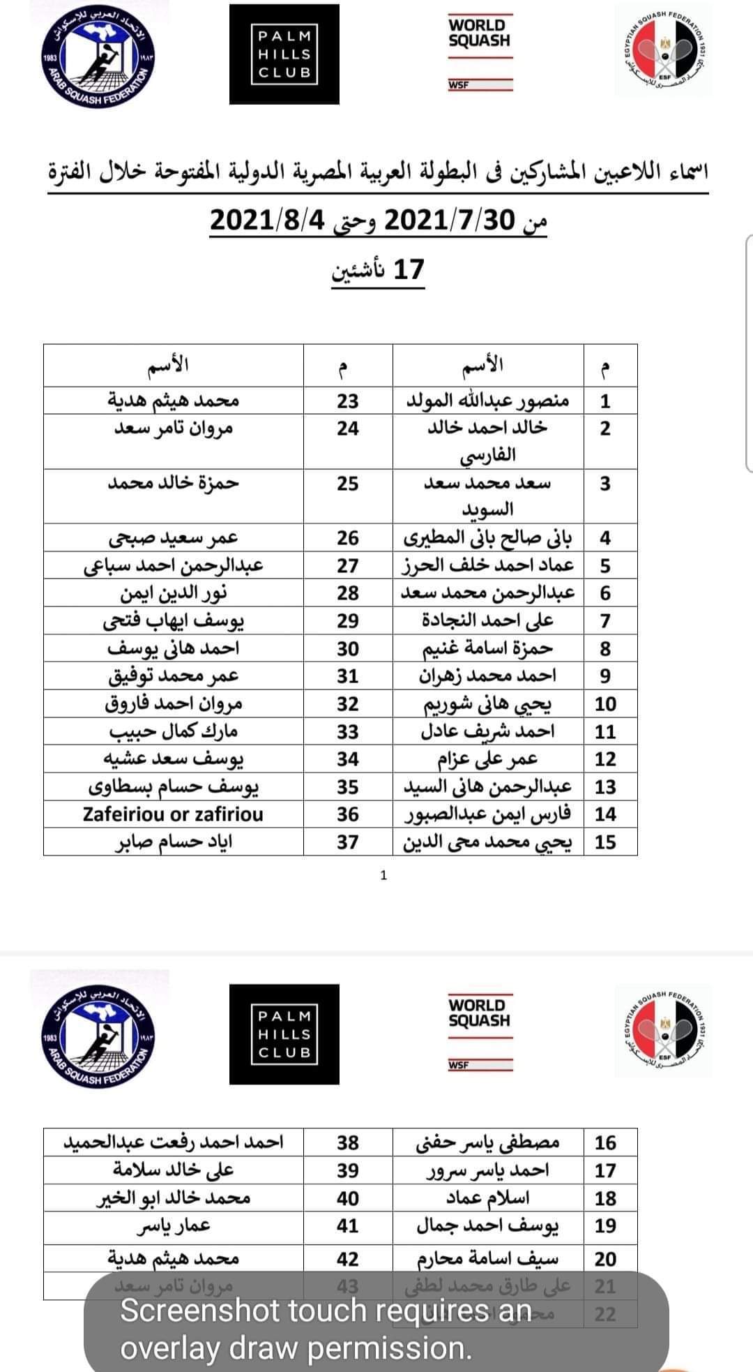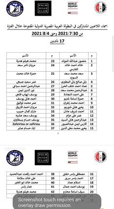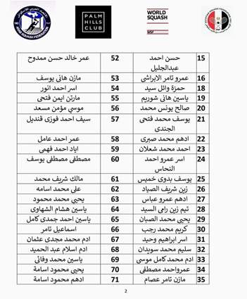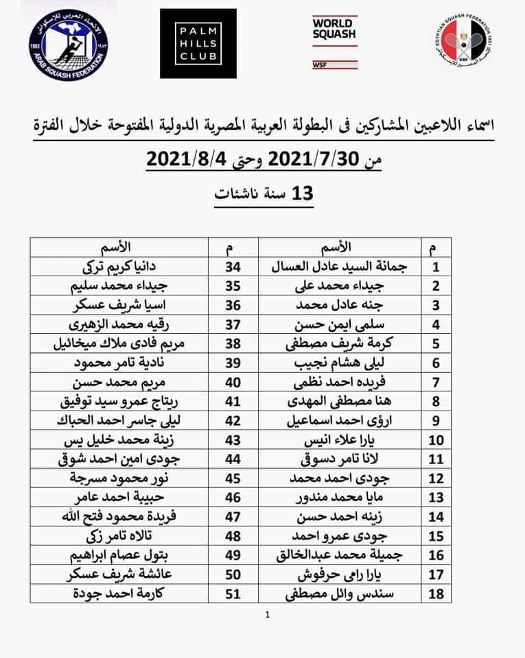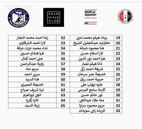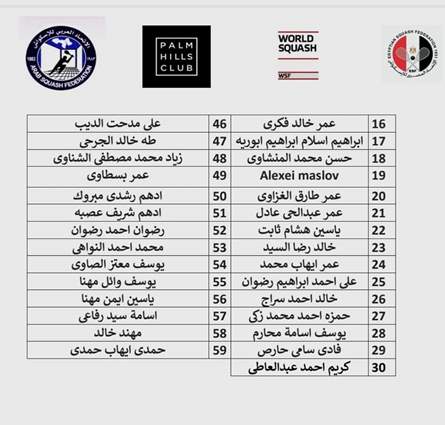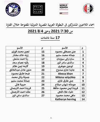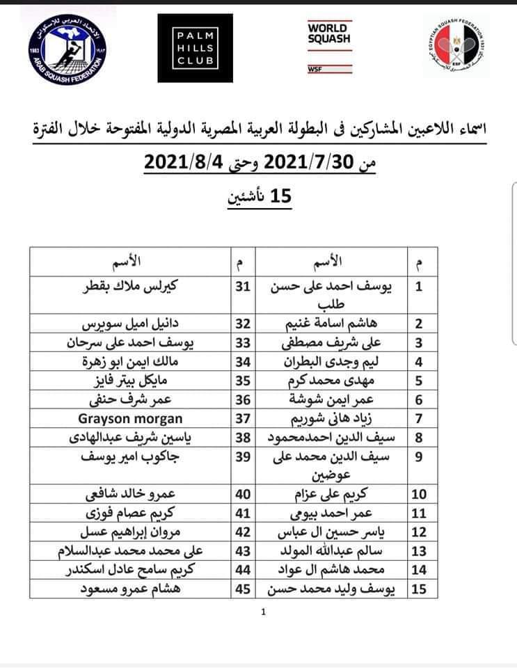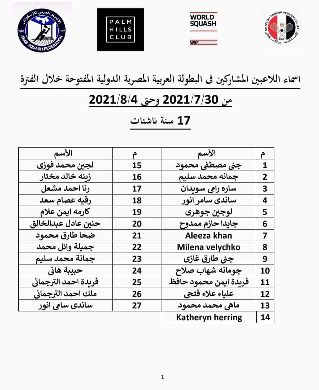 أسماء اللاعبين واللاعبات المشاركين في البطولة العربية المصرية الدولية المفتوحة "بالم
