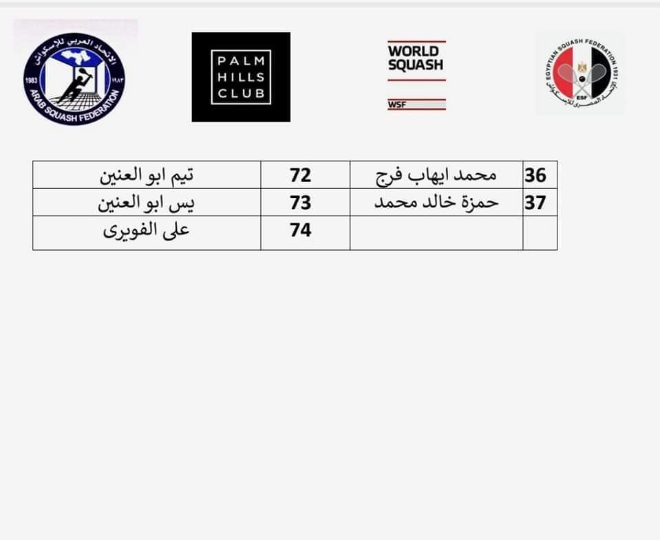 الاتحاد العربي للاسكواش يعلن أسماء اللاعبين في البطولة الدولية بمصر