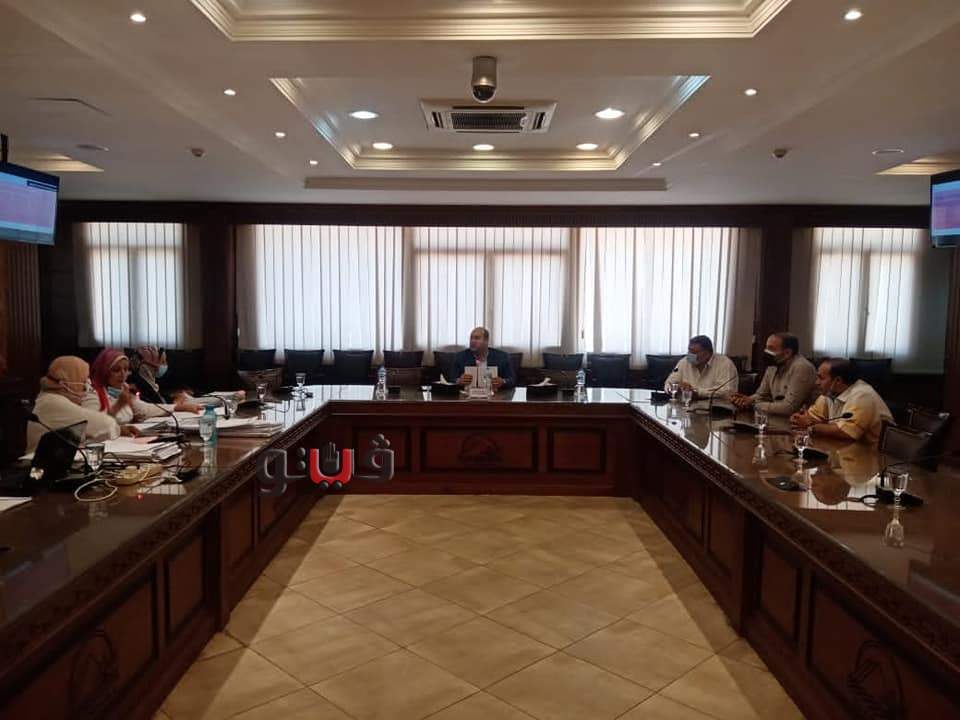 من خلال اجتماعه مع أعضاء اللجنة لمناقشة ومراجعة أعمال البناء للعقارات الجاري تنفيذها والصادر لها تراخيص سابقة قبل قرار السيد اللواء / وزير التنمية المحلية رقم ٢١٨ / ٢٠٢٠ الخاص بإيقاف أعمال البناء.