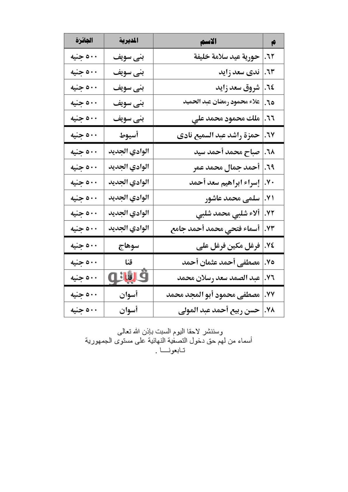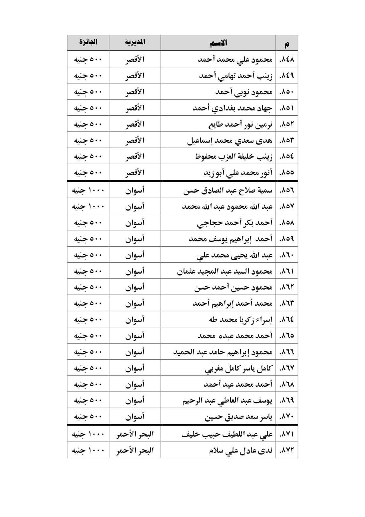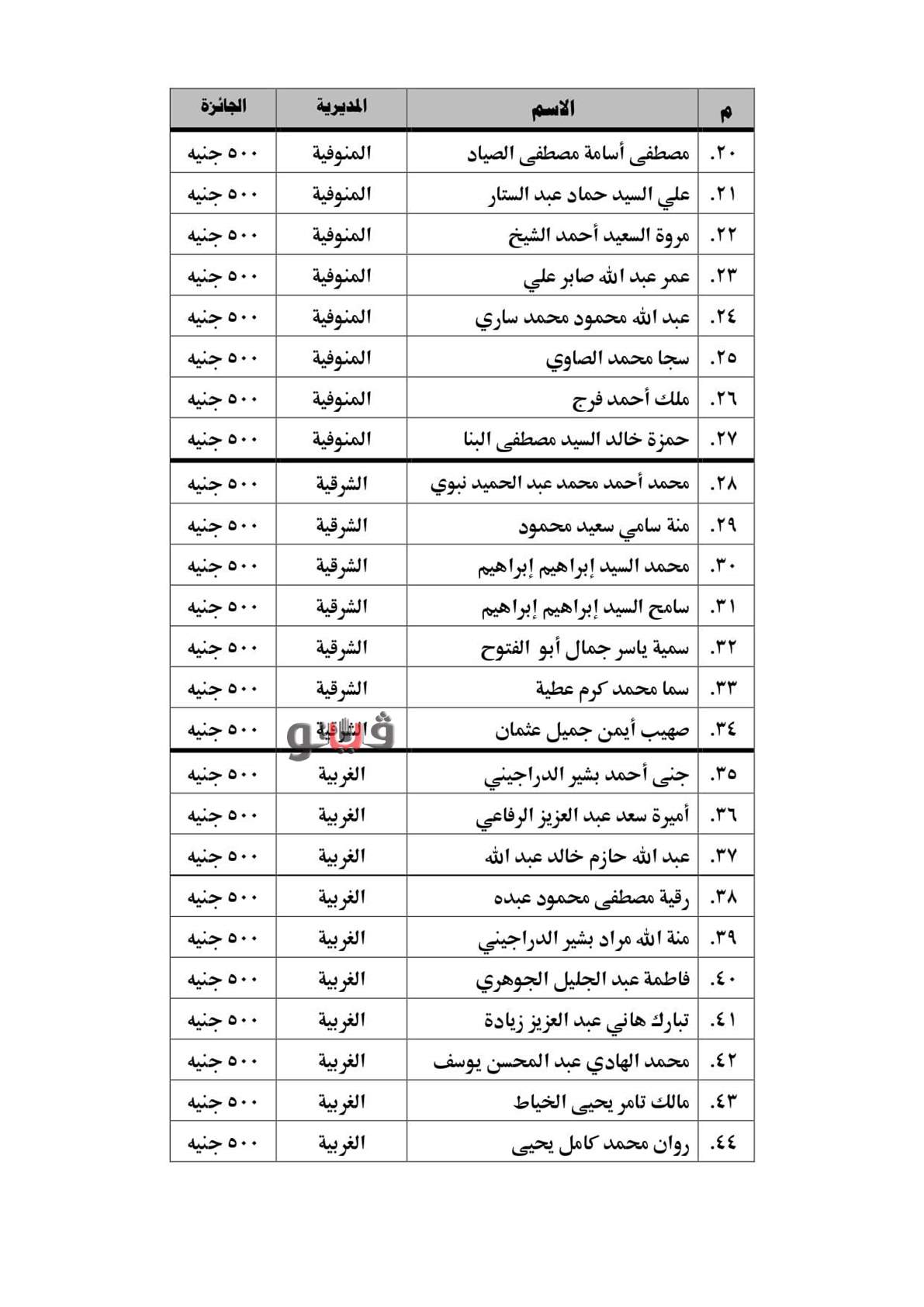 أعلنت وزارة الأوقاف عن أسماء الفائزين في مسابقة الأوقاف الرمضانية للقرآن الكريم وذلك خلال التصفية الأولية بالمديريات الإقليمية والجوائز الأولية لمسابقة الأوقاف الرمضانية للقرآن الكريم، وذلك على النحو التالي: