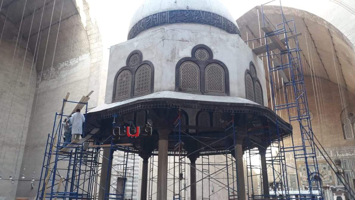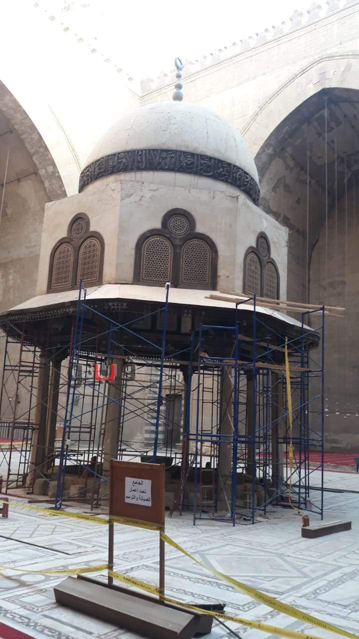 بعد سقوطها.. الآثار تنتهي من إعادة تثبيت قبة مسجد السلطان حسن غدا