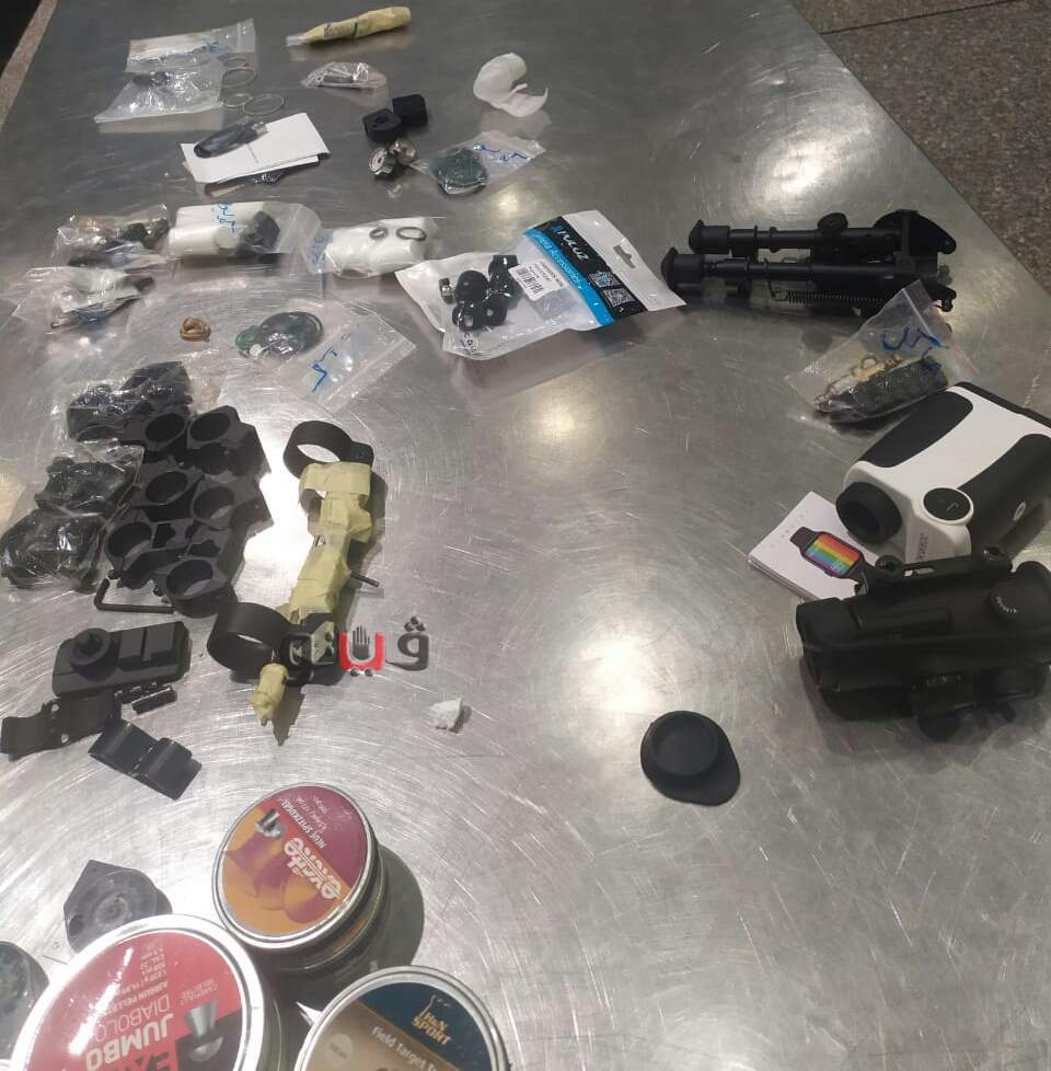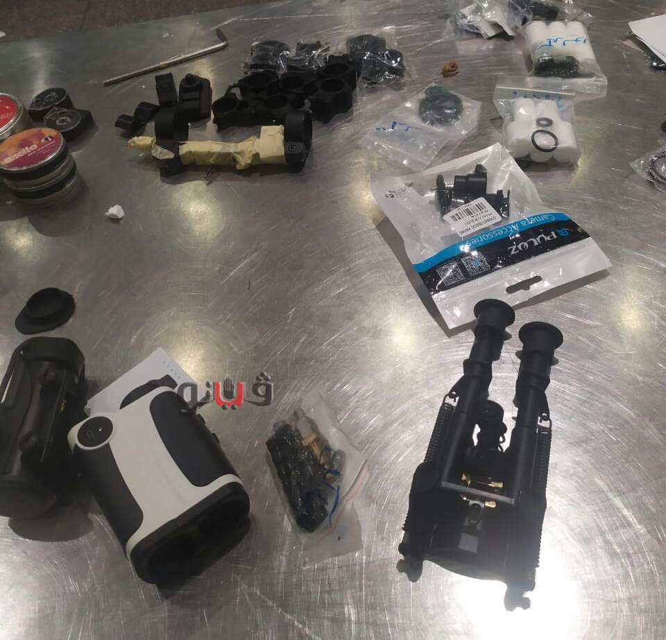 وأشارت المصادر إلى أن أحمد محمد فوزي مدير الحركة المشرف على صالة الوصول بمبنى الركاب رقم 2، كلف محمد حسين محمود مأمور الجمرك، بتفتيش حقائب الراكب يدويا مما أسفر عن ضبط منظار يثبت على سلاح وأجزاء معدنية صغيرة يمكن تثبيتها علي سلاح، بإجمالي 13 قطعة، و3500 طلق رش و 4 خزن فارغة وجهازين ضغط غاز تستخدم علي بنادق ضغط الهواء وجهاز لقياس المسافات، حيث عثر على طلقات الرش في 7 علب بكل علبة 500 طلقة تقريبا داخل ملابس حول الشاشة، وأجزاء معدنية دقيقة داخل علبة سجائر وأجزاء في علب أخرى بين طيات الملابس في الحقائب.
