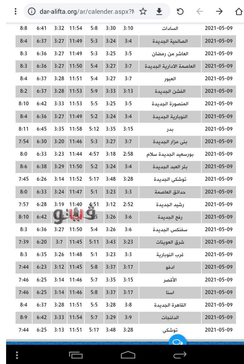 ويوضح الجدول مواقيت الصلاة اليوم كالتالي: