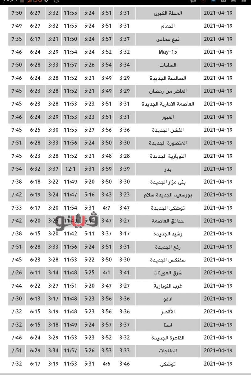 ويوضح الجدول مواقيت الصلاة اليوم كالتالي: