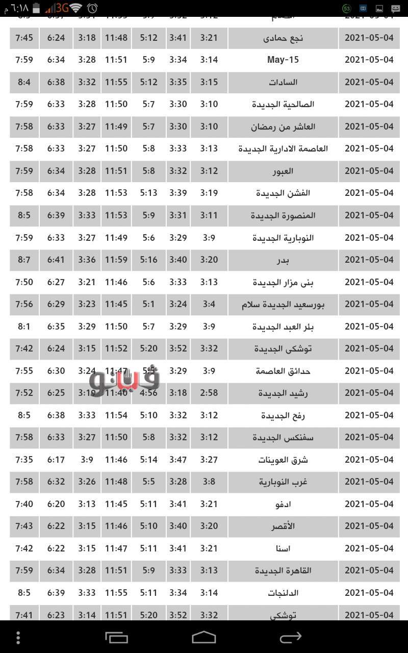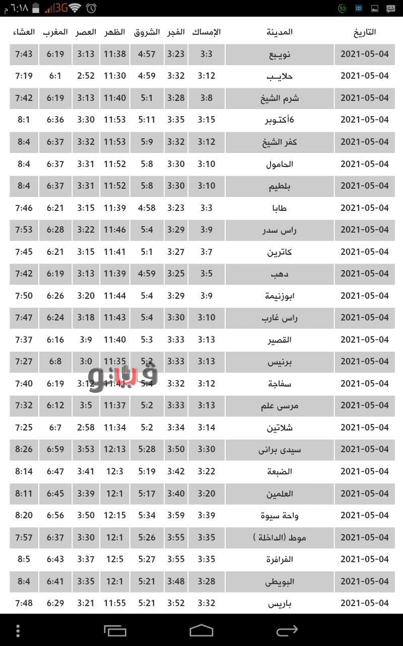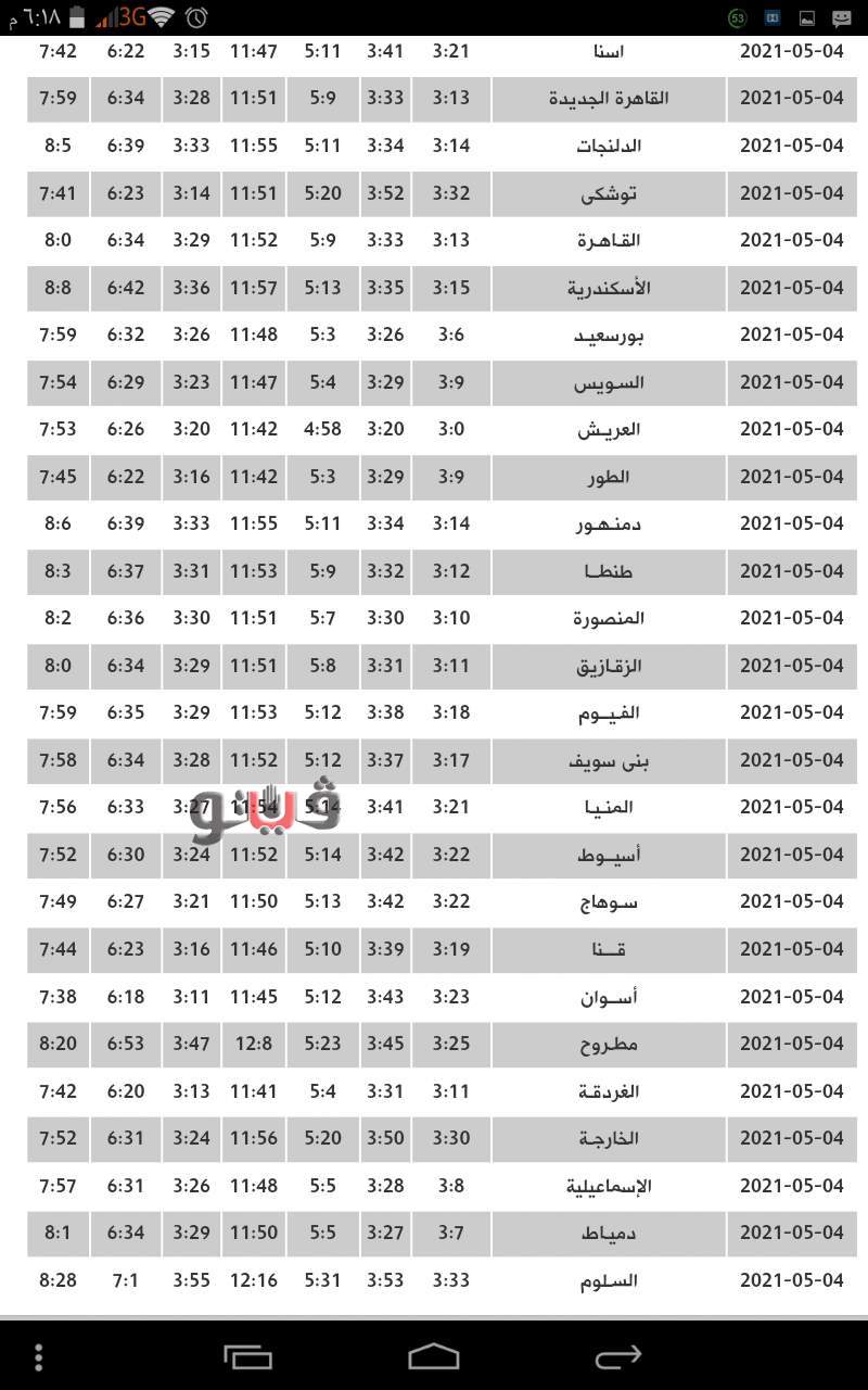 ويوضح الجدول مواقيت الصلاة اليوم كالتالي: