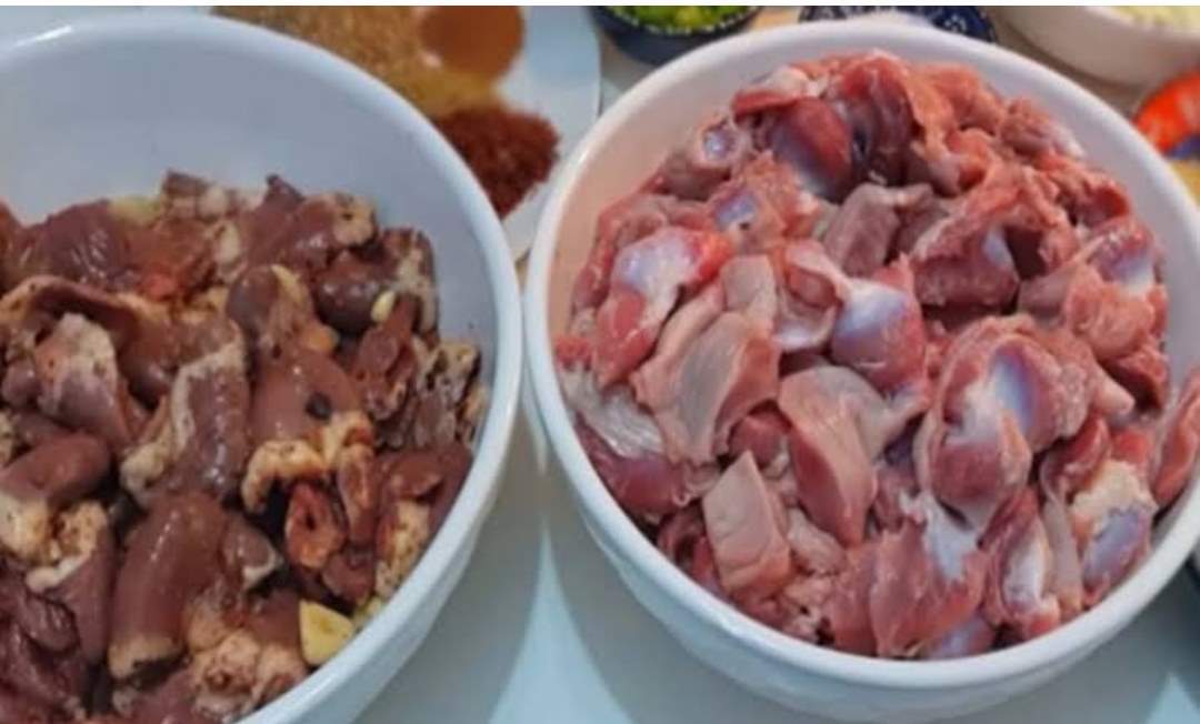 قطعي الكبد والقوانص متوسطة الحجم (مثال نقطع القوانص اربعة قطع والكبد من 4 إلي 6 قطع حسب الحجم)