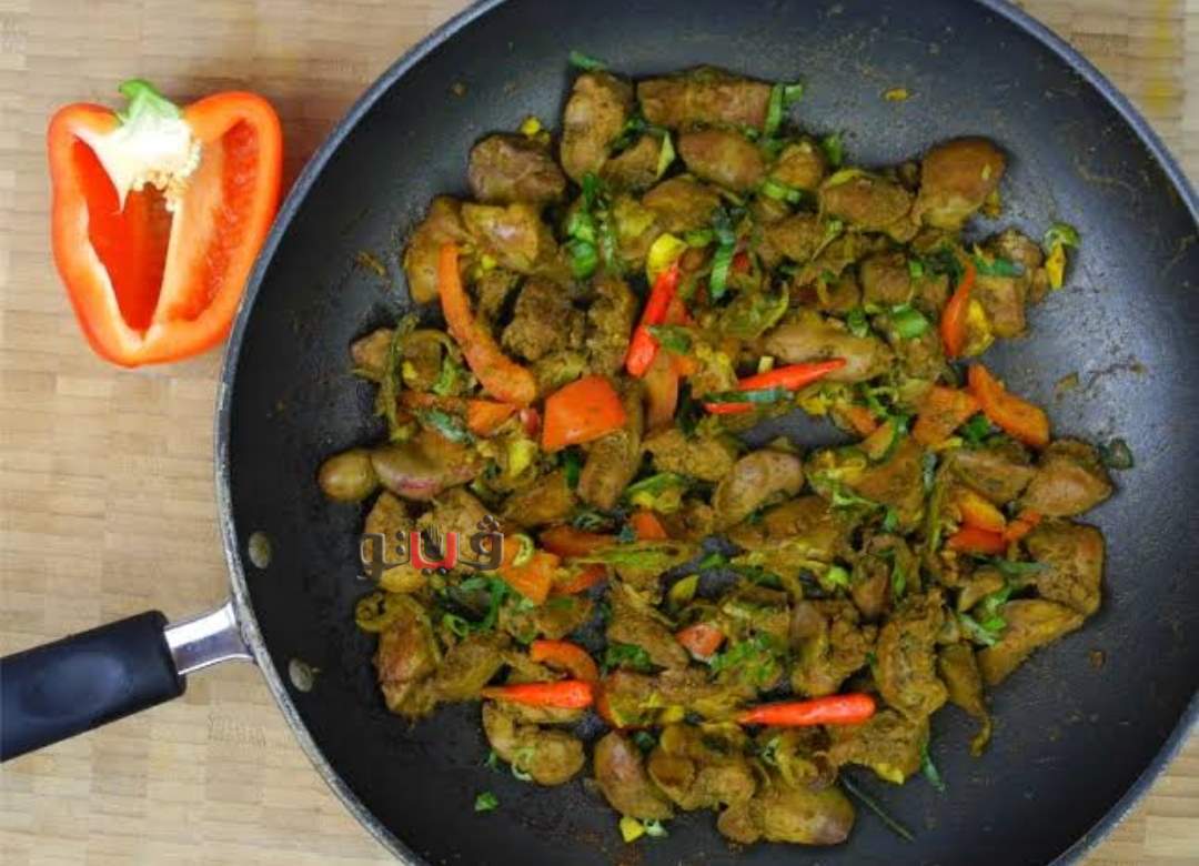 تابعي الي أن تستوي الكبد والقوانص وقومي برفعها من علي النار وقومي بوضعها في طبق التقديم.