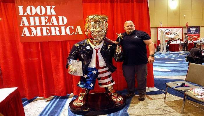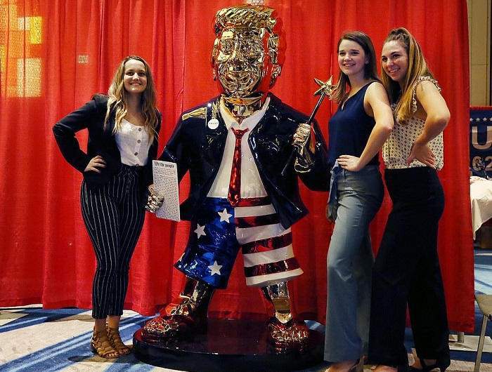 خطف تمثال ذهبي ضخم للرئيس الأمريكي السابق دونالد ترامب، الأضواء في مؤتمر العمل السياسي للمحافظين، الذي بدأ الجمعة الماضية.