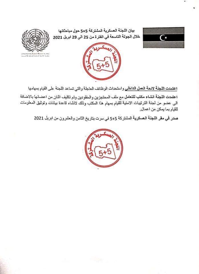 مجموعة 5+5 توصي بدمج أفراد الأمن في ليبيا واختيار قيادة مشتركة مقرها سرت