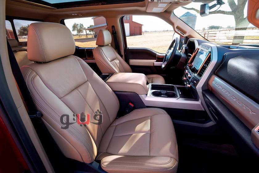 تتميز فورد سوبر ديوتي القادمة 2022 بشاشة جديدة كليا توصف بأنها موجهة نحو المناظر الطبيعية وتوفر Apple CarPlay و Android Auto لاسلكيًا ، إلى جانب القدرة على القيام بمهام متعددة بفضل وظيفة تقسيم الشاشة. يتيح ذلك للمرء عرض التنقل والموسيقى وميزات الشاحنة ودليل المالك الرقمي الجديد في مجموعات مختلفة.