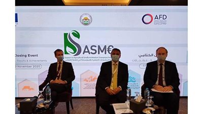 اختتمت وزارة الزراعة واستصلاح الأراضي، فعاليات البرنامج المشترك لدعم المشروعات الصغيرة والمتوسطة فى القطاع الزراعى "ساسمي" SASME ، والذي تنظمه الوزارة بالتنسيق مع الاتحاد الاوروبي، والوكالة الفرنسية للتنمية بالقاهرة، بحضور