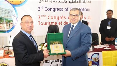 تبادل وزير القوى العاملة محمد سعفان الدروع مع محافظ الإسكندرية في افتتاح المؤتمر الدولي للعاملين بالسياحة