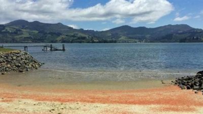 تحولت الشواطئ الرملية في منطقة أوتاجو في أقصى جنوب نيوزيلندا إلى اللون الأحمر وذلك بعد نفوق الملايين من جراد ا