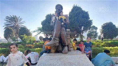 ملاهٍ وتسلق تمثال أحمد رامي.. احتفال الاطفال بخامس أيام