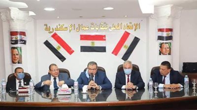 التقى وزير القوى العاملة محمد سعفان القيادات النقابية بالإسكندرية ويطالبهم بالتواجد مع العمال للحفاظ على الإنتاج