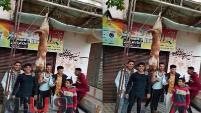 تداول عدد من رواد التواصل الإجتماعي "فيسبوك" بالتقاط عدد من الشباب صورا من تعذيب كلب عقب تعليقه من قدمه في سقف من الخشب بقرية الشقر بمركز الفشن ببني سويف