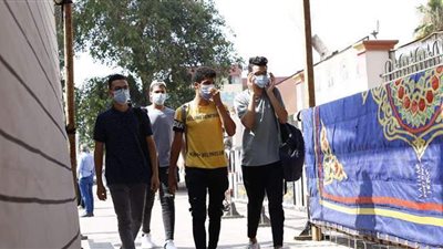 توافد طلاب الثانوية العامة بالمنوفية، على لجان الامتحانات استعدادا لأداء امتحان مادة اللغة العربية، وسط اجراءات احترازية للحد من انتشار فيروس كورونا.
