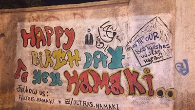 قرر عدد من ألتراس محمد حماقى، الاحتفال بعيد ميلاده اليوم بطريقة خاصة، حيث قاموا مساء أمس الإثنين، برسم جرافيتى بكلمة happyBirthday، على سور نادي النصر، للتعبير عن حبهم الشديد لنجمهم المفضل. وأكدوا ...