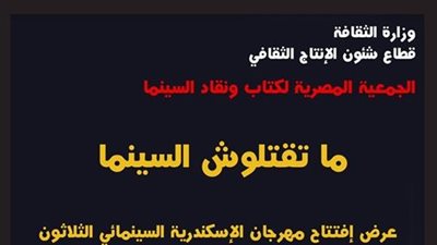 يستعد المخرج محمد مرسي لتقديم عرض "ماتقتلوش السينما" في افتتاح مهرجان الإسكندرية السينمائي الثلاثين لدول البحر المتوسط، غدا الأربعاء 10 سبتمبر بقاعة المؤتمرات بمكتبة الإسكندرية، في تمام الساعة 8 ...