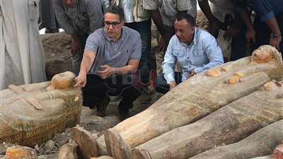 تفقد الدكتور خالد العنانى وزير الآثار يرافقه الدكتور مصطفى وزيرى الأمين العام للمجلس الأعلى للآثار أعمال البعثة الأثرية التابعة لوزارة الآثار بجبانة العساسيف بالبر الغربى والتى نجحت أول أمس فى كشف النقاب عن خبيئة ضخمة لعدد من التوابيت آدمية ملونة سيتم الإعلان عن تفاصيلها صباح يوم السبت القادم