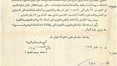 "فيتو" تنفرد بنشر وثائق جديدة عن حرب أكتوبر.. البنك المركزي يفتح حسابا لتلقي التبرعات.. تدريب الطيارين على أيدي خبراء هنود.. تحديد فصائل دم العاملين بالوزارات.. دعم المستشفيات بكوادر طبية