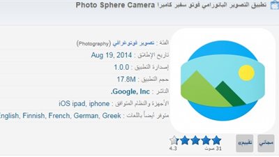 يقدم متجر الآيفون لتحميل التطبيقات المجانية والمدفوعة تطبيق " photo sphere camera " لمستخدمى أجهزة آبل " الأيفون والأيباد والأيبود " وهو تطبيق يتيح لمستخدميه القيام بإلتقاط الصور حتى ٣٦٠ درجة، وكذلك ...