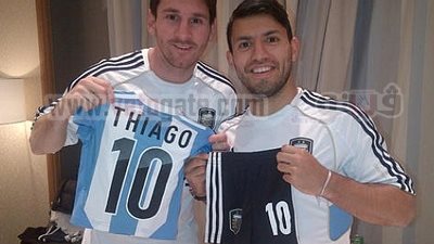 نشرت صحيفة "ماركا" الإسبانية صورة للأرجنتيني "ليونيل ميسي" لاعب برشلونة الإسباني وزميله في المنتخب "سيرجو أوجويرو" لاعب مانشستر سيتي الإنجليزي في معسكر منتخب بلادهما وهما يرتديان قميص المنتخب ...