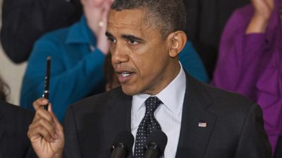 وقع الرئيس الأمريكى باراك أوباما قانون تخفيف الضرائب على الأمريكيين لعام 2012، الذى يجعل التخفيضات الضريبة التى كانت