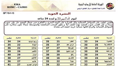 «الأرصاد»: طقس اليوم لطيف شمالا معتدل على الوجه البحري والقاهرة