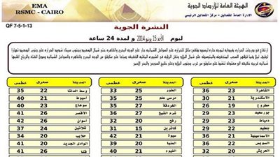 «الأرصاد»: طقس اليوم معتدل شمالا حارعلى باقي الأنحاء