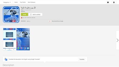 يقدم متجر جوجل بلاي تطبيق "كل يوم معلومة طبية" لمستخدمي الأجهزة المزودة بنظام تشغيل الأندرويد "الهواتف والأجهزة اللوحية"، وهو برنامج عربي طبي تم إنشاؤه لإثراء القارئ العربي بالمعلومات الطبية الموثوقة ...