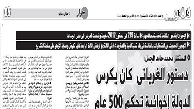 "الجمل": دستور الغرياني يكرس لدولة إخوانية تحكم 500 عام