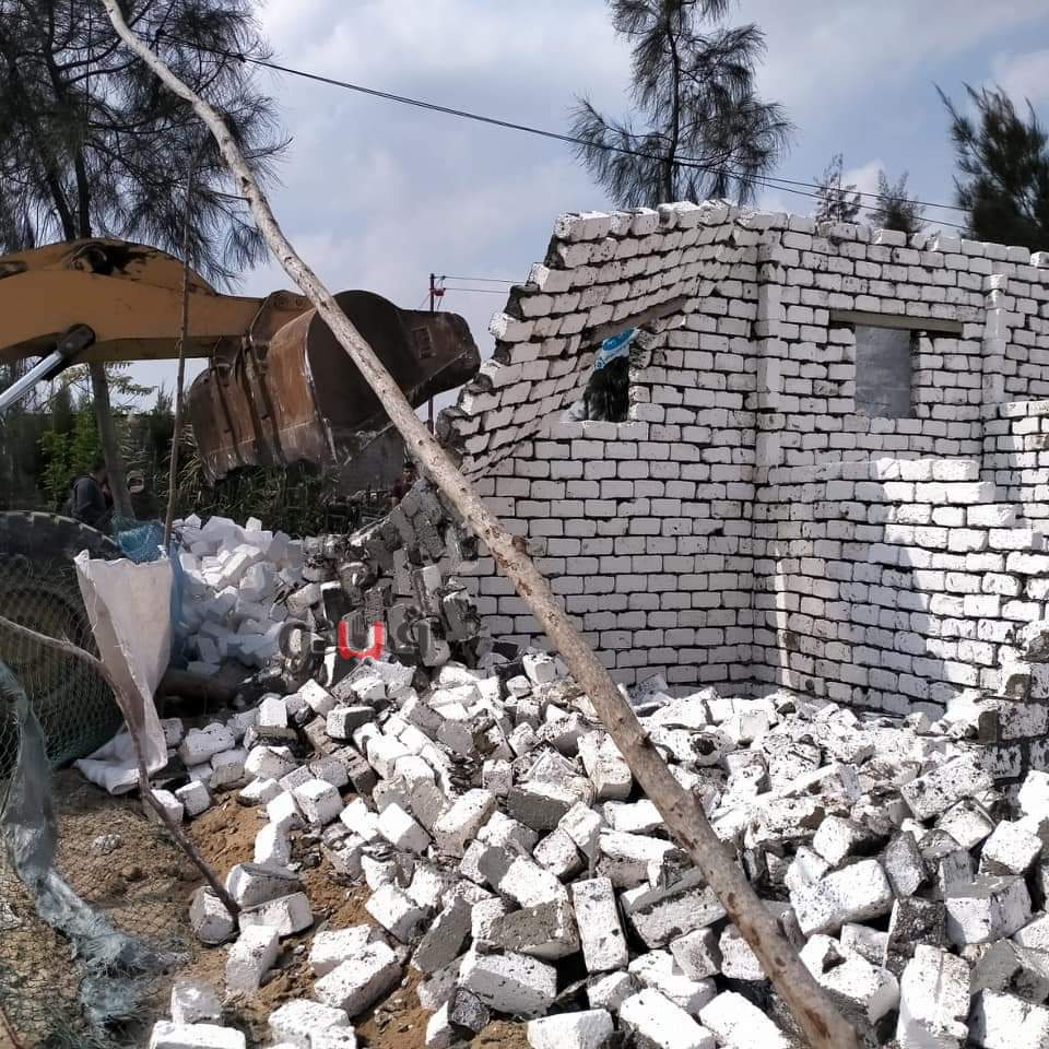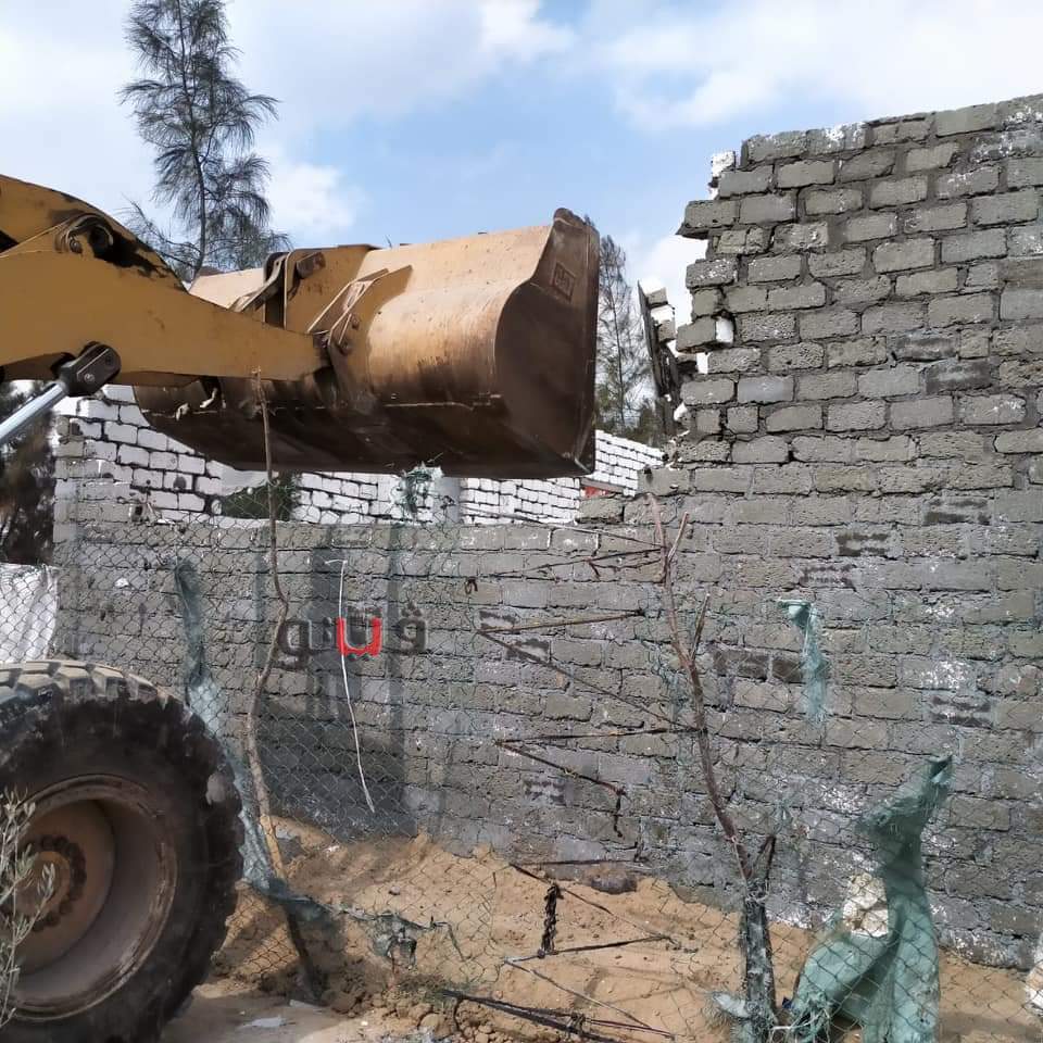 وتبين أن التعدي عبارة عن مبنى من الطوب الأبيض غير مكتمل البناء على مساحة ٩٠ مترا وتمت إزالته حتى سطح الأرض.