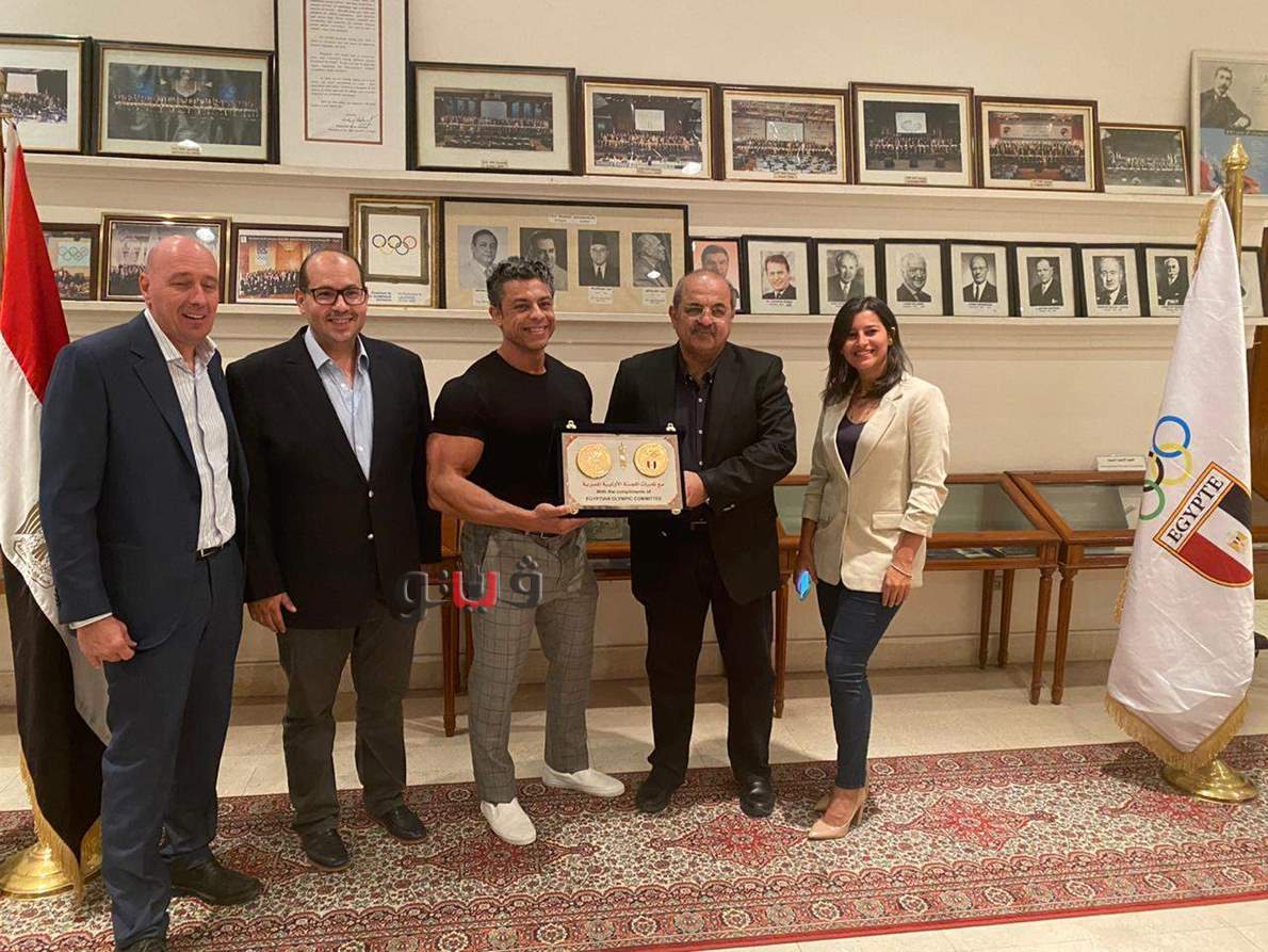 كرم مجلس إدارة اللجنة الأولمبية برئاسة المهندس هشام حطب لاعب كمال الأجسام محمد عصب الذي يستعد للمشاركة في بطولة مستر أولمبيا المقرر إقامتها في ولاية لاس فيجاس في الولايات المتحدة الأمريكية.
