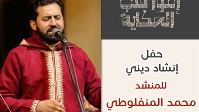 يشهد مركز إبداع قصر الأمير طاز ، التابع لقطاع صندوق التنمية الثقافية، مساء غدٍ الخميس، ليلة روحية مميزة يحييها المنشد الديني محمد المنفلوطي.